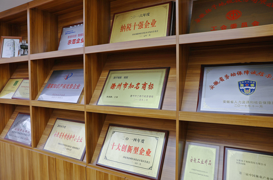 走進揚子地板的會議室,滿墻的證書和獎狀都是對揚子地板實力的一種認可,也是見證揚子地板一步以一步踏實走來的的榮譽褒獎。