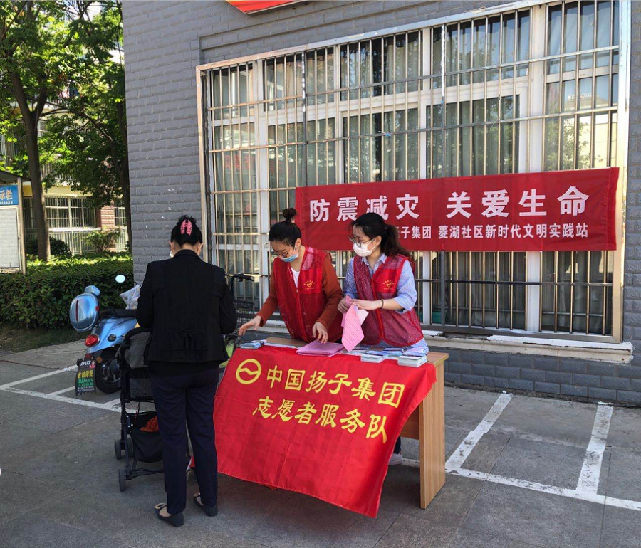 為常態化開展文明創建活動,認真做好2020年防災減災日宣傳教育工作,提高公民的防災減災意識,5月12日,中國揚子集團深入菱湖社區開展了以“防震減災 關愛生命”為主題的5·12防災減災日宣傳活動。