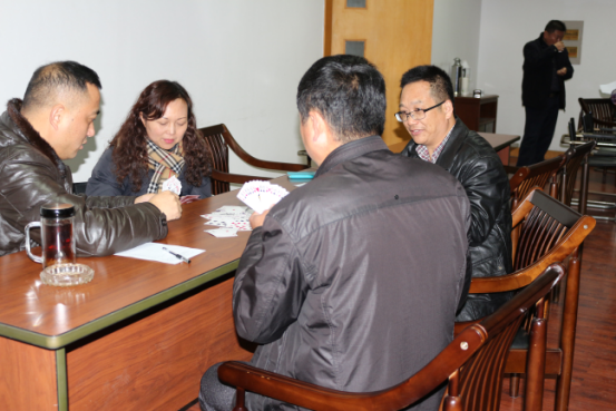 比賽活動(dòng)遵循“公平、公正、公開”比賽規(guī)則,來(lái)自該各部門的14組選手通過抽簽決定對(duì)手。比賽為積分淘汰制,十局積分高者為獲勝方。比賽開始后,賽場(chǎng)上的氣氛十分活躍,選手們密切配合、沉著應(yīng)戰(zhàn),對(duì)陣雙方比牌技、比智慧、賽成績(jī)、賽友誼。大家切磋牌技、互相學(xué)習(xí),加強(qiáng)交流,增進(jìn)友誼。